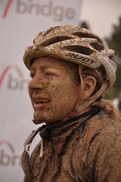 This was to be the muddiest day I have had on a bike!! After the neutral zone through George we went on to the first single track and that was a mud bath. Once again we started as the 3rd mixed team but could see Ergon on every little up hill, we finally passed them and they came with us on the down hill. Nadine took Craig out at the start of a single track, a bit unnecessary! We started Montague pass soon after that and that was were we left them behind. The climb felt good and I started to feel that I had the best day of the week (was about time for the legs to get right on the last day…), the down hill was worse in the cold and the wet. After a while we caught up with a couple, difficult to see who since everyone was covered in mud, after asking for track and passing on a single track and we got on to a gravel road I saw that it was Haibike! We rode together for almost the rest of the race and on the short hills I could hear and feel how tired Kathrin was and I felt strong, it was still difficult to get away since we were in a bunch with some other teams.