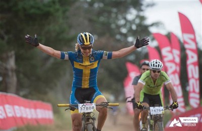 Sometimes I wonder why the races here in SA needs to start so early…! The alarm went off at 3.45am so that we could get up and force down breakfast to be ready for the start at 6.30am at Meerendal! It was said to be a tough route with lots of climbing and single tracks and I was prepared for a tight battle with Candice since she was very strong at W2W! Mariske Strauss was also back after her injury and she would definitely be a threat. When we started the first climb I made sure to sit at the front so that I could ride my own pace and also be sure to be with them when starting the downhill, I could not let these 2 XCO riders go ahead! At the top it was only Candice and I, she got a small gap on the rocky descent but I could catch up quickly on the flat and we rode together until half the race when we passed the venue to start the second loop. She was very strong on one of the long climbs so I thought to myself that this is going to come down to a sprint! But as we started the first climb on the second loop I could see how she dropped off and on the longest climb of the day I opened up a big gap and could ride comfortably to the finish and win by 8,5 minutes. I was a bit surprised, I did not expect that after how I have felt the last month…