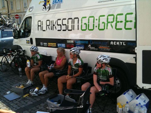 Jag har haft en riktigt bra månad i Falun sedan sista resan som var till Spanien, det har blivit många fikan med kompisar och mycket avkoppling hemma. I tisdags förra veckan var det dags att åka igen, det blir en 3,5 veckors tävlingsturne vilken startade med ett etapplopp i Tjeckien. Vi i Alriksson GoGreen som åkte iväg var jag, Madde, Monica, Malin, Jessica och Johanna (så än en gång hette hela laget något på M eller J:-). Med som ledare hade vi Thierry från Danmark, Kjell och Martin, det var en ny erfarenhet för Martin att vara med som massör, och det klarade han galant!