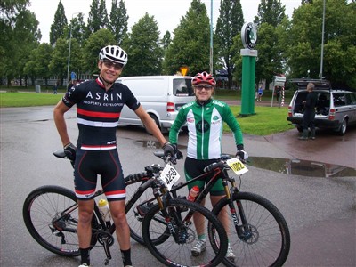 Det började ösregna precis som starten gick och det var en väldigt lång master start och jag hamnade längre och längre bak i fältet, kraschen för 2 veckor sedan fanns färskt i minnet, när vi kom till backen där fältet släpptes såg jag inte ens täten. Jag tror jag låg 6a bland tjejerna och körde om 2st i början av backen. På toppen kunde jag se Angelica och Emmy som satt i en klunga men jag kunde inte komma ikapp. Ann hade redan försvunnit. Efter ett tag körde jag om Angelica som stod med en punktering. Till Emmy var det hela tiden ca 30 sekunder och när vi hade kört halva banan kom jag ikapp henne, fast vi var då i en stor klunga på ca 30 personer och det blev utspritt uppför en backe och jag fick inte ner kraften i benen och halkade efter.
