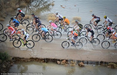 Det regnade på morgonen när vi lämnade guest houset i Oudtshoorn där vi bott i 2 nätter och packade in oss i husbilarna som vi skulle bo i de följande 5 nätterna. Starten gick vid Buffelsdrift där vi körde prologen igår, det gick lugnt och fint i början men kaoset startade redan efter 8-10km när vi kom in på en grusväg som hade förvandlats till en lera som liknade våt cement. Det fastnade så mycket på däcken att de till slut inte gick att snurra, det stod cyklister överallt och försökte få bort leran från cyklarna. Det gick att springa med cykeln ca 500 meter innan det var dags att stanna igen, så höll det på bra länge! Vi kom till slut iväg och kunde börja cykla igen men allt var geggigt, kedja, bromsar, kläder, allt! Det blev ett 5,5 timmars långt lervällings-race! När vi passerade en flod stannade vi och tvättade cyklarna. Jag kunde inte använda lilla klingan så klättrade på stora och fick kramp! En dag av överlevnad och att försöka hålla cykeln hel. Vi lyckades vinna etappen och ta över ledningen i mixade klassen med ca 9 minuter! Det var första gången som jag och Craig fick sätta på oss ledartröjan i en etapptävling!
