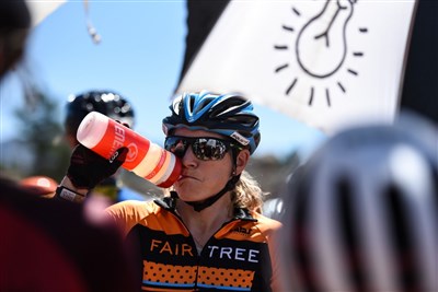 Det var kul att få köra i rosa ledartröjan på sista etappen! Det skulle bli hårt att behålla den då endast 1.25 skiljde de första 3 lagen åt. Dagen började med ca 30 kilometer på grusvägar vilket gjorde att det blev en lite avvaktande start och mest en transportsträcka till stigarna började, hela fältet var samlat där och det blev en hård spurt till första stigen. Igen hade jag svårt att få plats så det var Summit, Ghost, Mariske, Cherie, jag och Ariane, i den ordningen. Vi höll bra fart utan luckor men jag hörde hur Ariane kraschade igen och tappade på oss andra. Efter den första stigen gick vi in i dagens enda långa backe och egentligen enda stället man skulle kunna gå loss på, precis i slutet på stigen bestämmer sig Cherie för att vänta in Ariane, vilket lämnar mig med en lucka till de andra och jag får börja backen med att jaga ikapp! Det sved ordentligt i benen och jag fick tankar på att släppa. Ungefär halvvägs upp släppte Ghost och vi såg dem inte mer. Jag fick bita i ordentligt för att sitta med Summit men inne på de långa stigpartierna gick det bra och jag kunde återhämta mig lite. Vi var tillsammans med dem vid andra vätskekontrollen vilket också var enda stället där vi kunde få en flaska, jag slängde min flaska (vilken inte var tom) för att ta en ny av Nicole, men jag såg henne först inte bland allt folk och när jag ser henne var det för sent så jag missade flaskan. Vi hade 30 kilometer kvar i värmen utan vätska! Jag hade som tur var en väldigt bra och stark partner så vi delade Mariskes flaska och vid sista vätskekontrollen spurtade hon iväg före oss andra för att fylla sin flaska så att vi hade en till att dela på. Vi körde taktiskt och lät Candice och Annie göra mestadelen av dragjobbet, de behövde ju egentligen köra ifrån oss. Med ca 6-7 kilometer kvar är det en vänsterböj upp på några sandsäckar vilket Annie inte såg så hon åkte rakt fram, hon insåg det efter bara ca 2 meter och kom av cykeln snabbt för att komma upp på rätt väg, de tappar inte mycket tid på det men däremot tror jag att de tappade kraft. Vi fick en liten lucka och när vi gick in på nästa stig och sandparti kunde vi gå ifrån och ta hem etappen!