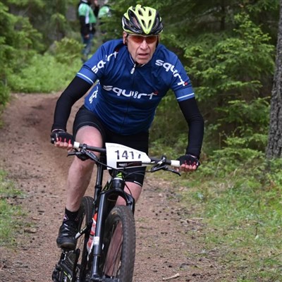 Det blev en kaotisk start, alla på en gång in på en smal liten väg, det blev en krasch redan efter ca 20 meter!! Jag såg hur Emmy for i backen precis framför mig och jag fick kliva av och lyfta cykeln över hennes framhjul och sen komma iväg. Jag var långt ner i klungan då och fick jobba hårt för att passera och komma fram. Jag blev omkörd av några herrar jag känner men snart kunde jag passera dem och fick in ett bra flyt i åkningen. Jag kände mig stark och kunde lätt sitta med i den lilla klunga jag hamnade i. Det var kul att se att ingen kom iväg framåt men det var hela tiden folk som droppade av bakåt. Det var en väldigt snabb bana, inte många höjdmeter och mycket stig med rötter, det var jättekul att köra en bana där farten var så snabb! Jag kom i mål som 12e person och första dam, 4,5 minuter före Emmy och endast 6 minuter efter Henrik Sparr som vann herrklassen. Det tog jag som ett bra betyg för benen som kändes sega på morgonen! Pappa körde väldigt bra och tog sig snabbt runt banan, imponerande!