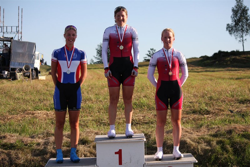 Tävlingen skulle avgöras i linjeloppet på 72 km som vi körde i söndags. Det var ett 18 km långt varv som innehöll en 1 km lång backe och vi skulle köra 4 varv. De första två varven gick väldigt sakta utan egentliga attacker. Efter det började vi attackera, vi fyra som var kvar i tävlingen från Alriksson körde riktigt bra, stort tack tjejer!! Sista gången uppför backen gick jag, Catrine, Emilia och Madde loss tillsammans med 2 juniortjejer. In i mål blev det lite som väntat, Emilia tog spurten och Catrine och jag kom in på andra respektive tredje plats. Jag tappade ledningen och slutade tvåa i tävlingen före Madde Olsson och Catrine som klättrade om Avalo till en fjärde plats.